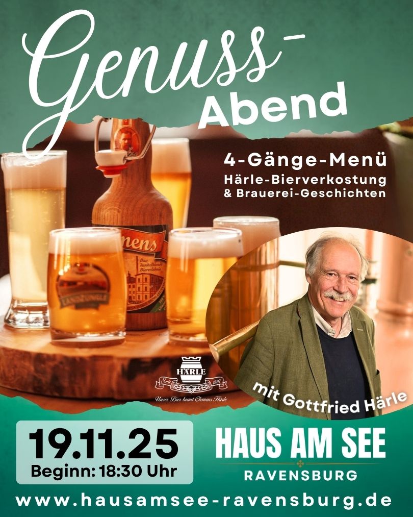 Ein Vier-Gänge-Menü mit feiner Bio-Küche inklusive Härle-Bierverkostung und Anekdoten erzählt von Brauereichef Gottfried Härle persönlich.