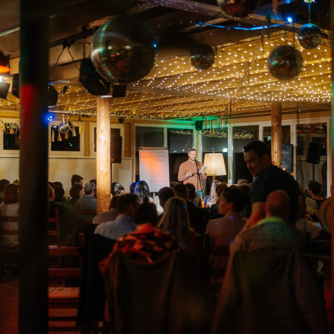 Unsere Weihnachtsfeiern sind mehr als nur ein Essen. Mehr als nur eine Party. Wir glauben an die Macht des Feierns und daran, dass Erfolge doppelt so schön sind, wenn man sie teilt. Glitzernde Lichter, festliche Deko, und der See im Hintergrund. Bei uns könnt ihr die Weihnachtszeit in einer magischen Umgebung feiern, die euch verzaubern wird.